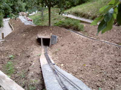 Der Tunnel ist fast fertig und auch schon mit Erde abgedeckt.