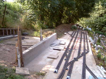 Die Bahnhofsplatte von Chur. Auch hier wurde wieder etwas Hang abgetragen, Brechkies eingefahren und eingeschalt. Das wollen wir noch schaffen.