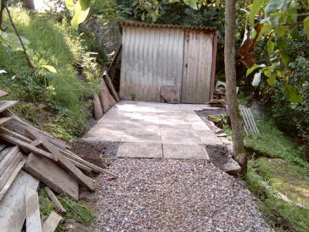 Hier soll einmal ein Sitz- und Ausichtsplatz entstehen. Die Platten sind inzwischen neu verlegt und der Weg angelegt.