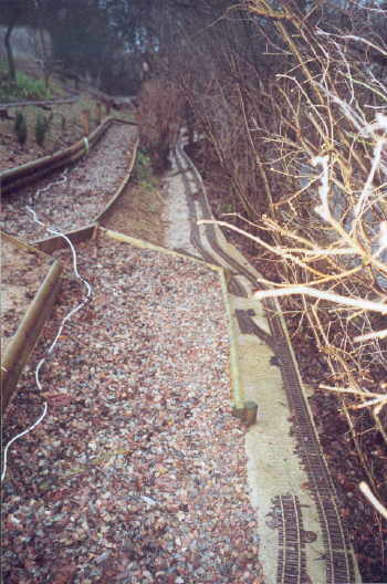 Das Laub wurde bereits mehrfach weggefahren, stapelt sich aber immer noch. Die Gleise sind hier jetzt komplett verlegt.